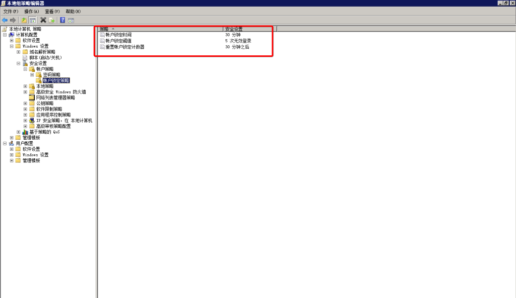 打开 控制面板 > 管理工具 > 本地安全策略,在 帐户策略 > 帐户锁定策略 中,配置 帐户锁定阈值 不大于 10 次。