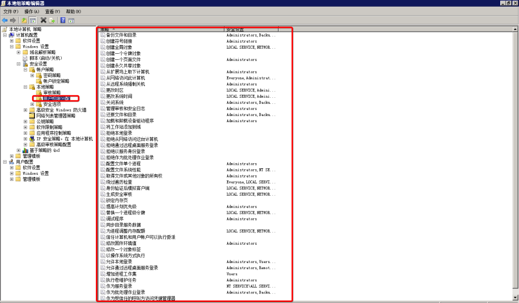 在本地安全设置中关闭系统权限只分配给 Administrators 组。